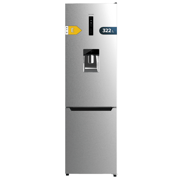 Bolero CoolMarket Combi 322 WD Inox E Frigorífico combi inox, 185,5cm de alto y 59,5 cm de ancho, con 322 litros de capacidad, compresor Inverter Plus, Total No Frost, dispensador de agua, clase energética D y con sistema Multi Air Flow. Además, cuenta con el modo Fast Cooling.